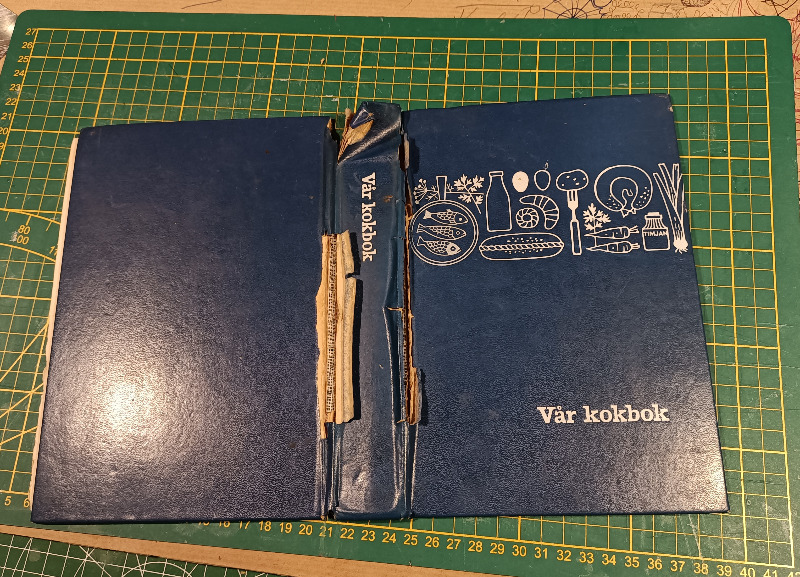 Ja, es ist faszinierend, aber tatsächlich hatte das Kochbuch der Mutter des Kochbuchs, das ich reparieren durfte, fast das gleiche Problem. Auch hier war der Rücken durch.